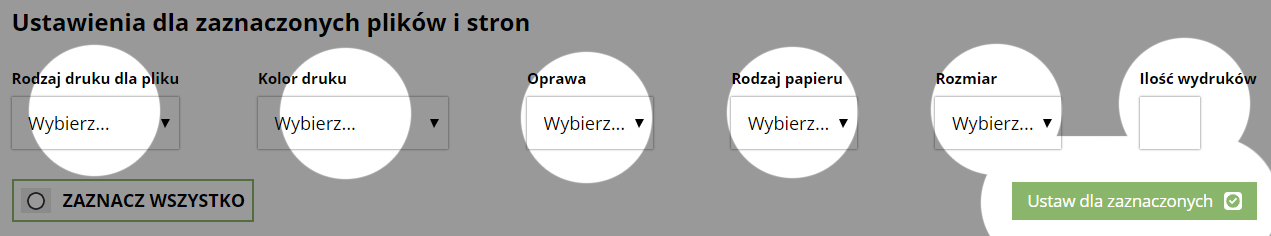 Ustawienia dla zaznaczonych plików i stron